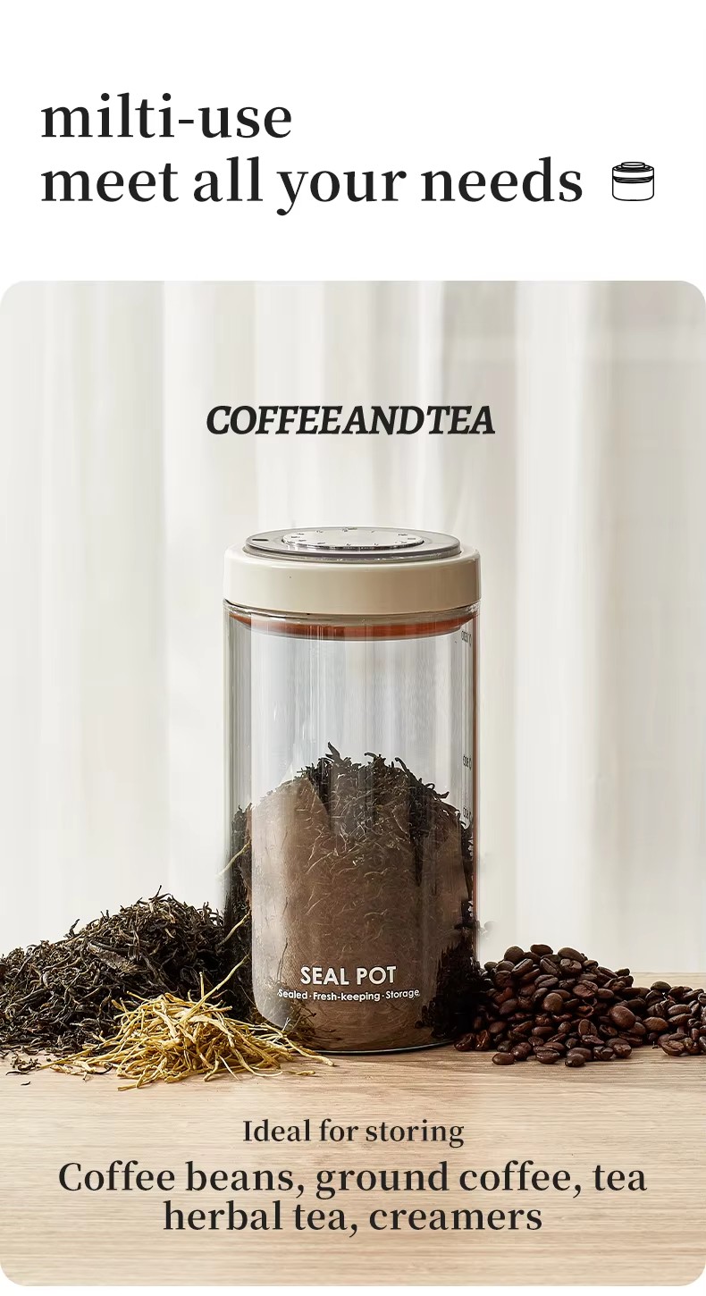 High Borosilicate Glass Food Storage Container Dry goods sealed can Coffee Bean Canister with Freshness Tracker wine Fermentation Tank Airtight Vacuum Jar