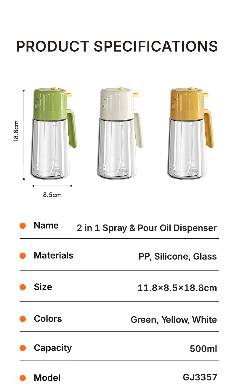 Household 500ml 2 in 1 Glass Oil Dispenser bottle for cooking Kitchen Tool for Oil Dispensing 2 in 1 olive oil pourer and sprayer