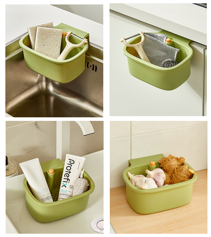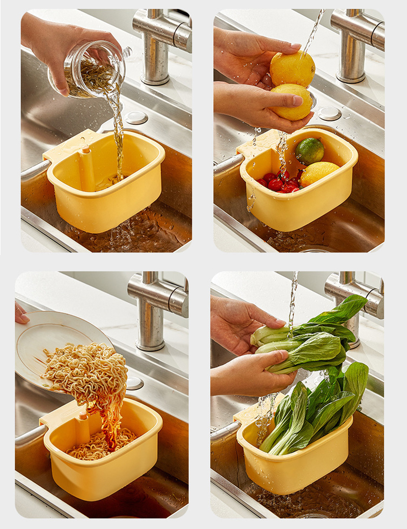 Kitchen Sink Separate Food Waste Strainer Basket with Push-Button Sink Hanging Drainage Basket Organizer for Storage Square Sink-Mount Food Scraps Catcher